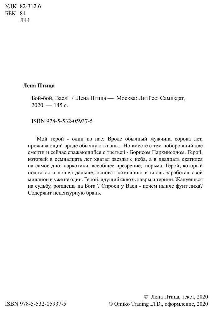 Книга: Бой-бой Вася! (Лена Птица); Автор, 2020
