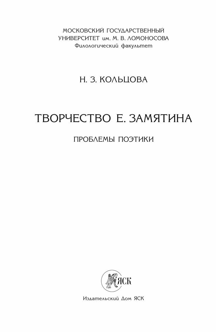 Творчество Е. Замятина: Проблемы поэтики (Н. З. Кольцова); Языки Славянской Культуры, 2019
