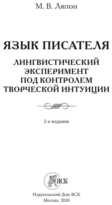 Язык писателя: лингвистический эксперимент под контролем творческой интуиции (Майя Валентиновна Ляпон); Языки Славянской Культуры, 2020