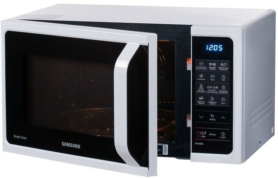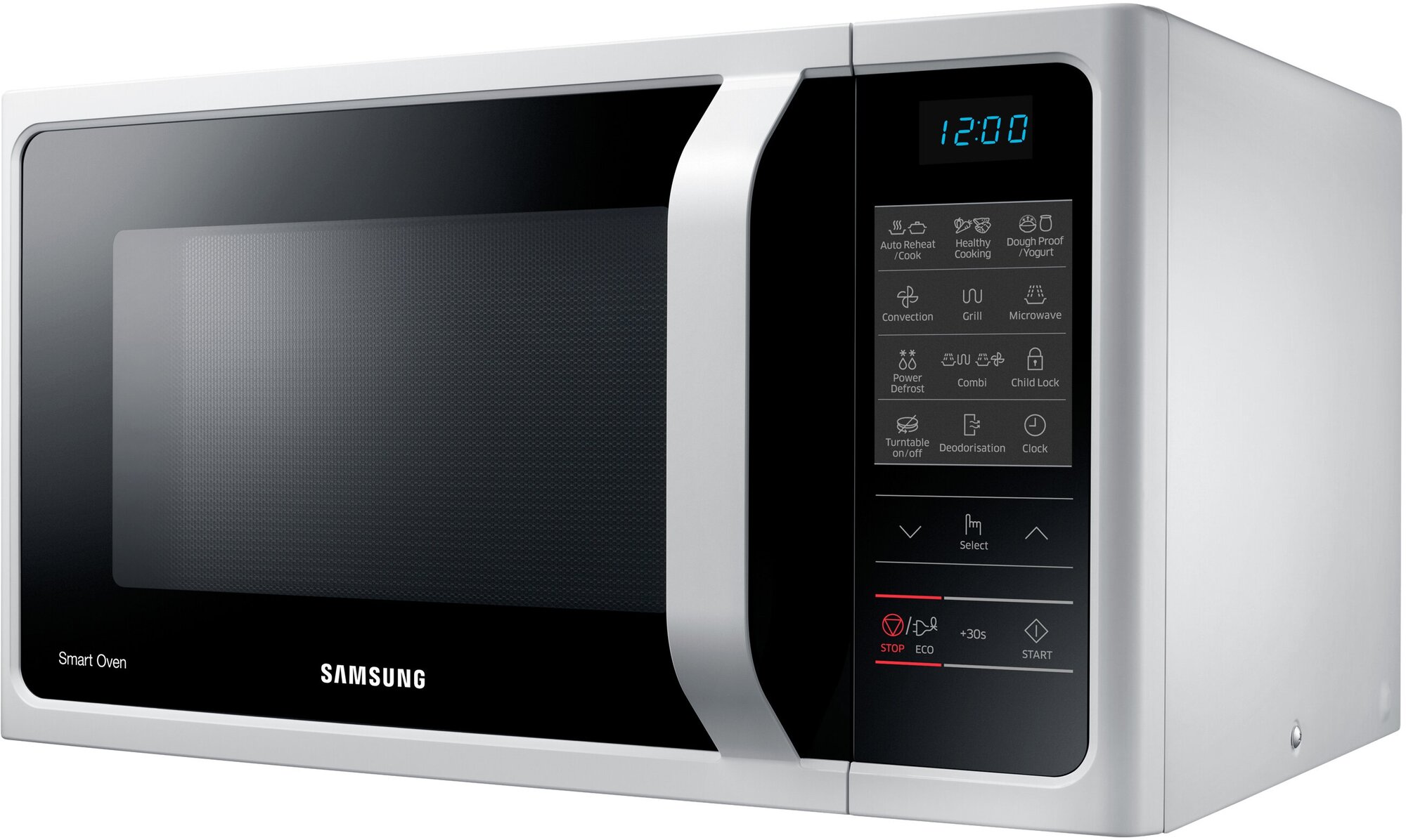 Samsung - современная микроволновая печь с грилем и конвекцией, позволяющая готовить пищу, а также размораживать продукты. МОЩНЫЙ ГРИЛЬ Мощный гриль, работающий по технологии ТЭН, позволяет быстро готовить блюда из мяса, рыбы и овощей. Решётка для гриля входит в комплект. РЕЖИМ ФЕРМЕНТАЦИИ Режим ферментации предназначен для быстрого приготовления домашнего теста и йогуртов. АВТОМЕНЮ Разработчики предусмотрели 24 автоматических программы для приготовления пищи.