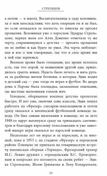 Очень интересно читать о том, каким был Эдуард Стрельцов в профессиональной сфере и в обычной жизни. Занимательно изучать архивы советских судебных заседаний, ведь так и непонятно, что произошло на самом деле. Понравилось, что автор безоценочно дает читателю узнать о том, что же происходило в жизни талантливого футболиста. Книга понравится тем, кто любит читать сильные биографии и фанатам советского футбола)