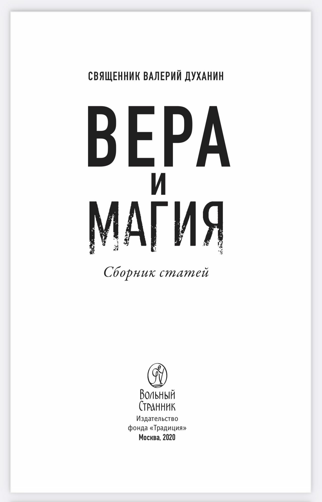 Книга: Вера и магия (протоиерей Валерий Духанин); Вольный странник, 2019