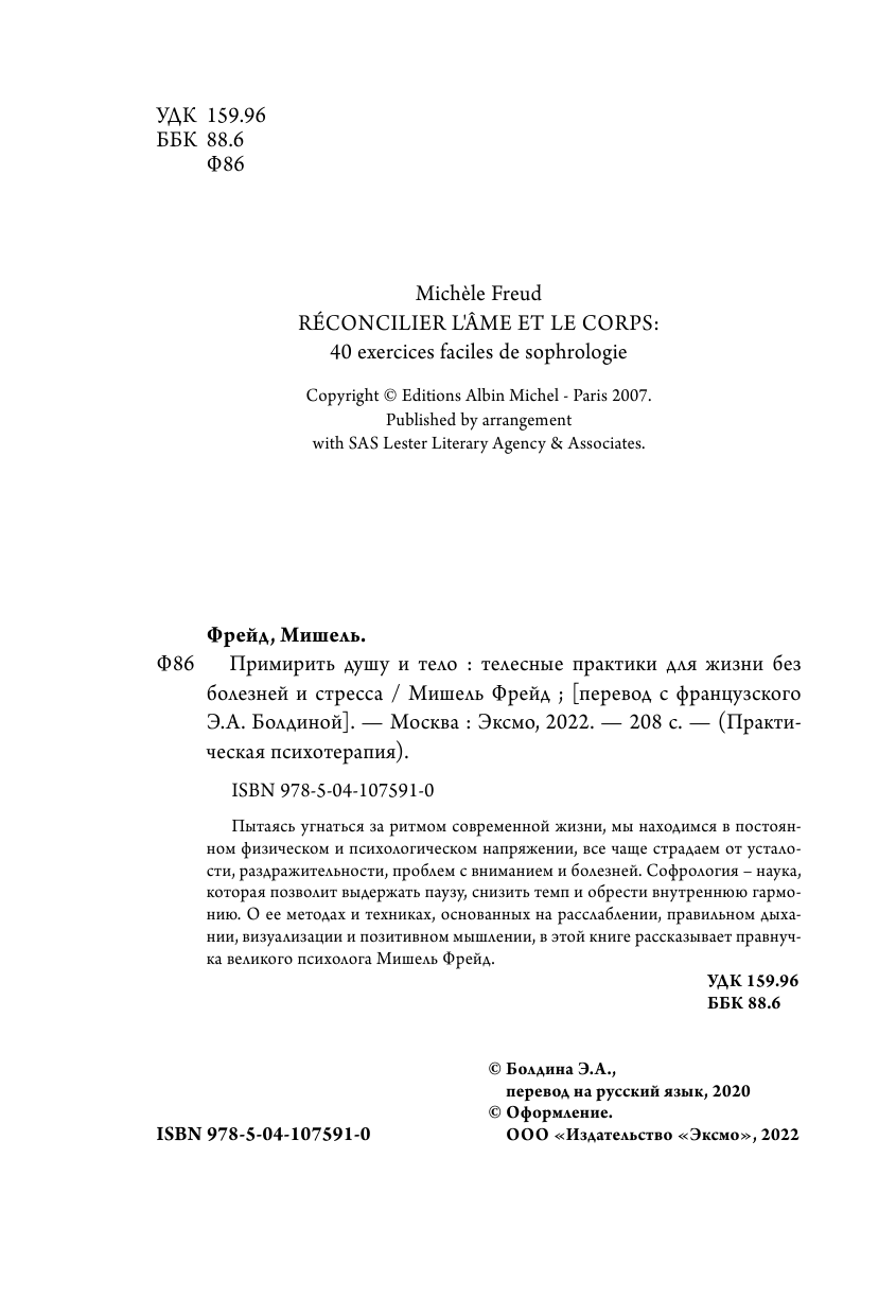 Примирить душу и тело. Телесные практики для жизни без болезней и стресса (Фрейд Мишель); ООО "Издательство "Эксмо", 2020