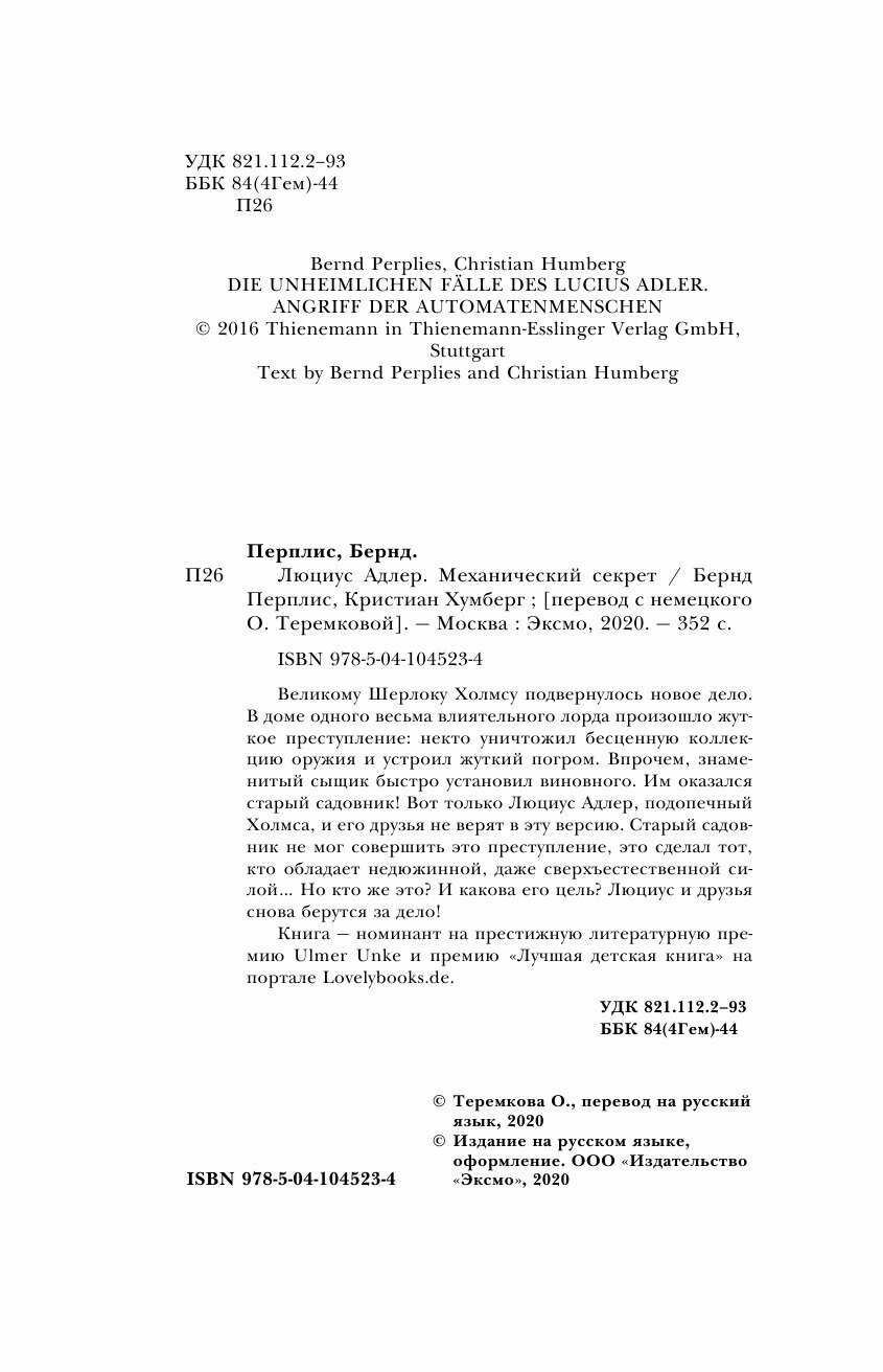 Люциус Адлер. Механический секрет (Перплис Бернд, Хумберг Кристиан); ООО "Издательство "Эксмо", 2020