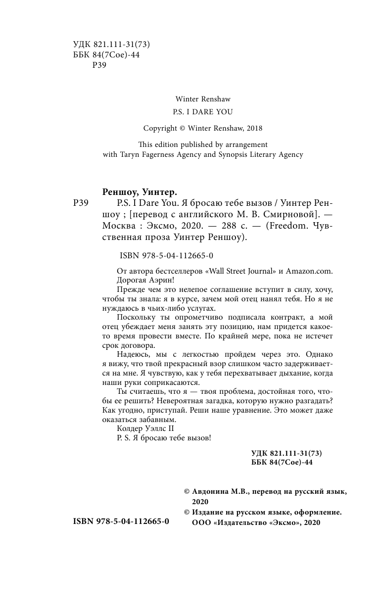 P.S. I Dare You. Я бросаю тебе вызов (Реншоу Уинтер); ООО "Издательство "Эксмо", 2020