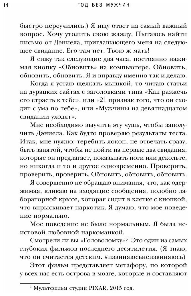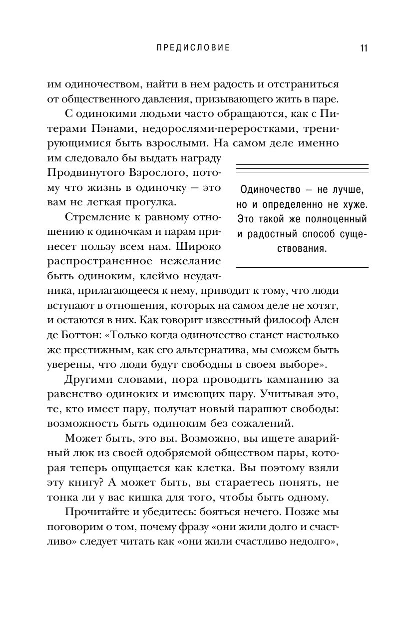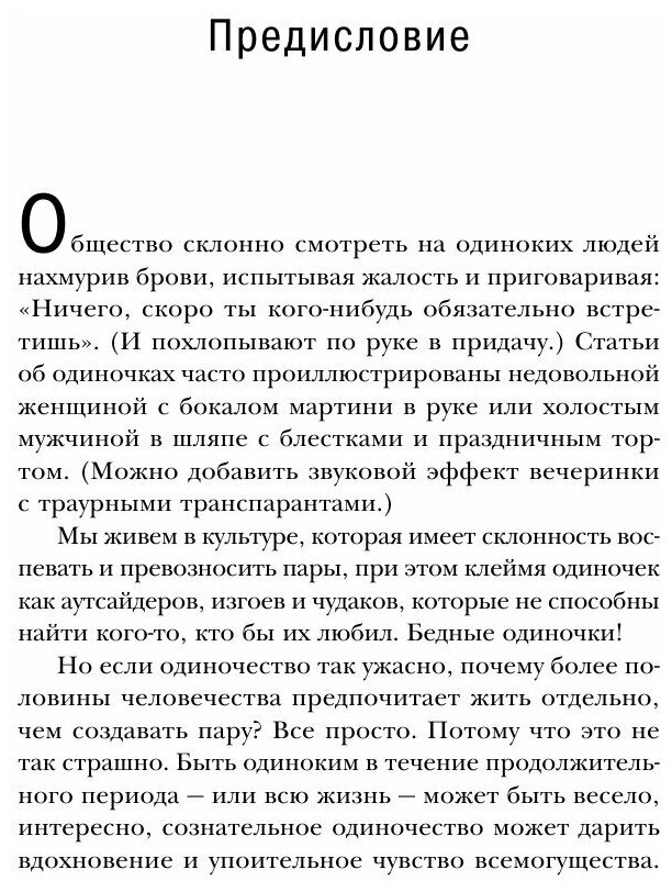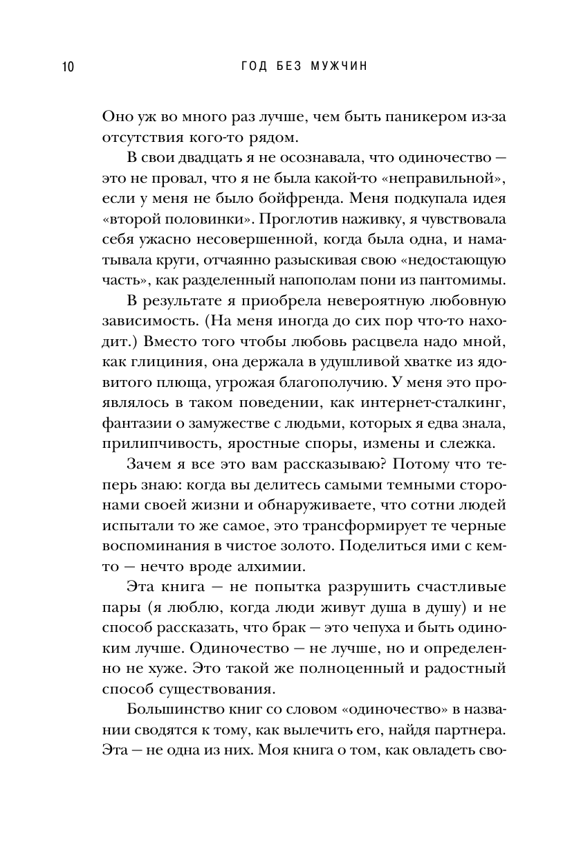 С большим удовольствием прочитала книгу за один день. Автор напоминает женщинам о том, что жизнь прекрасна и удивительна вне зависимости от того, есть ли в данный момент рядом с тобой мужчина или нет. Не стоит зацикливаться на неудачных отношениях, хорошо быть самодостаточной, свободной и счастливой, а всё остальное приложится. Рекомендую к прочтению!