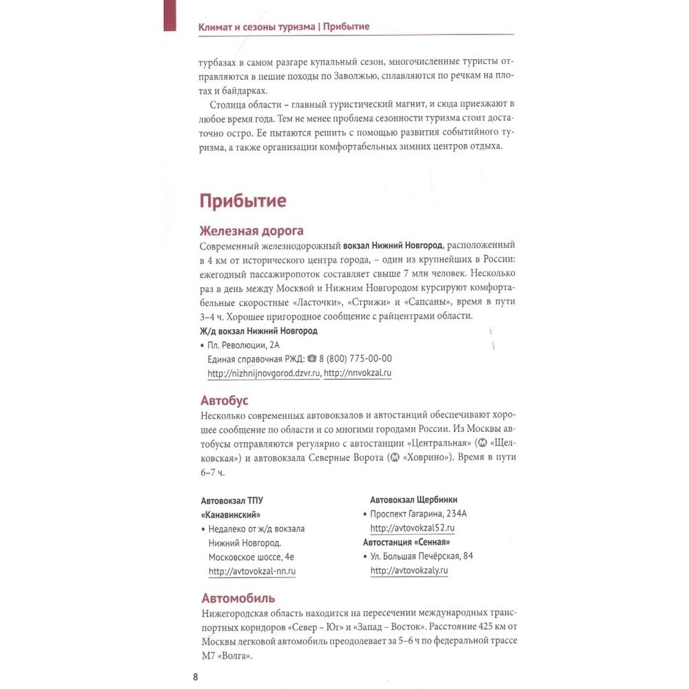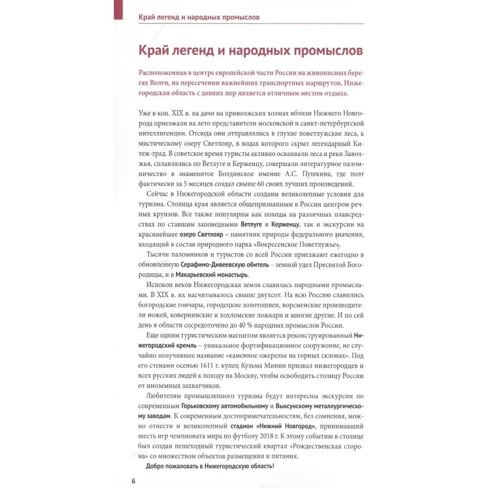 В путеводителе «Нижегородская область» вы найдёте и общие разделы, которые помогут подготовиться к путешествию. Это краткая история области, информация о транспортном сообщении, советы путешественникам.