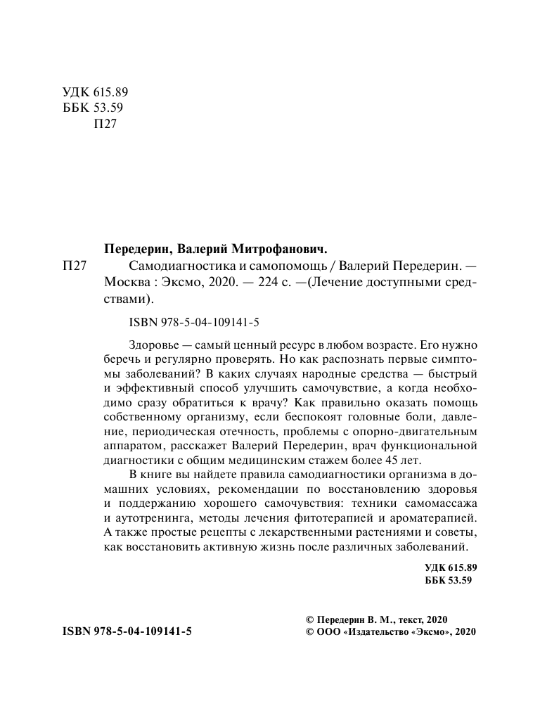 Самодиагностика и самопомощь (Валерий Передерин); Эксмо, 2020
