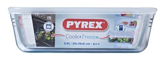 Форма жаропрочная Pyrex Cook Freez прямоугольная с пластиковой крышкой многофункциональная изготовлена из жаропрочного боросиликатного стекла, выдерживает температуры от -40 до +300 градусов. Универсальная стеклянная форма Pyrex "три в одном": форма для выпечки (жаропрочная форма, можно использовать в газовых и электрических духовках и СВЧ), форма для хранения (вы приготовили, а потом закрыли крышкой и поставили в холодильник или морозильную камеру), блюдо или салатник для подачи на стол.