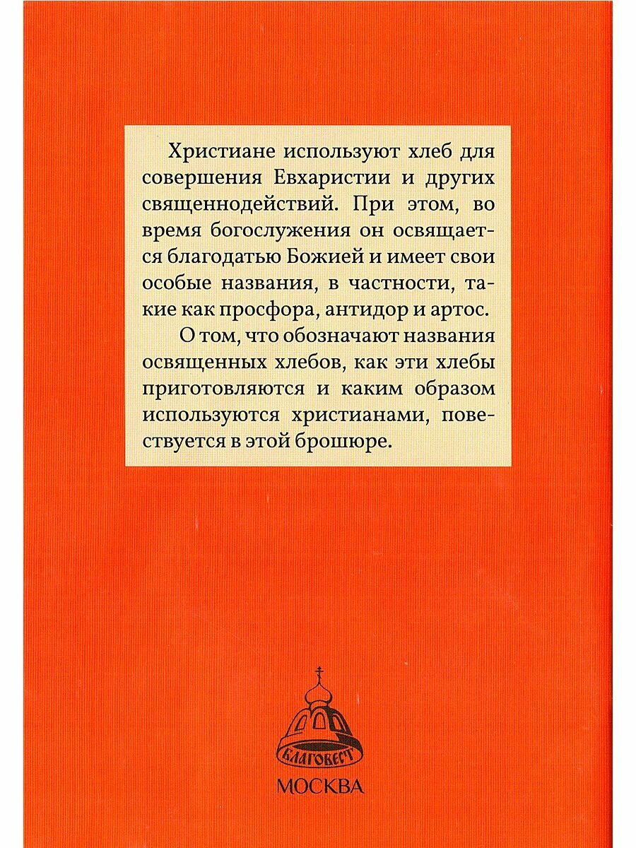 В настоящем издании рассказывается об освященных Церковью для употребления верующими в разных случаях дарах, которыми являются просфора, антидор и артос.