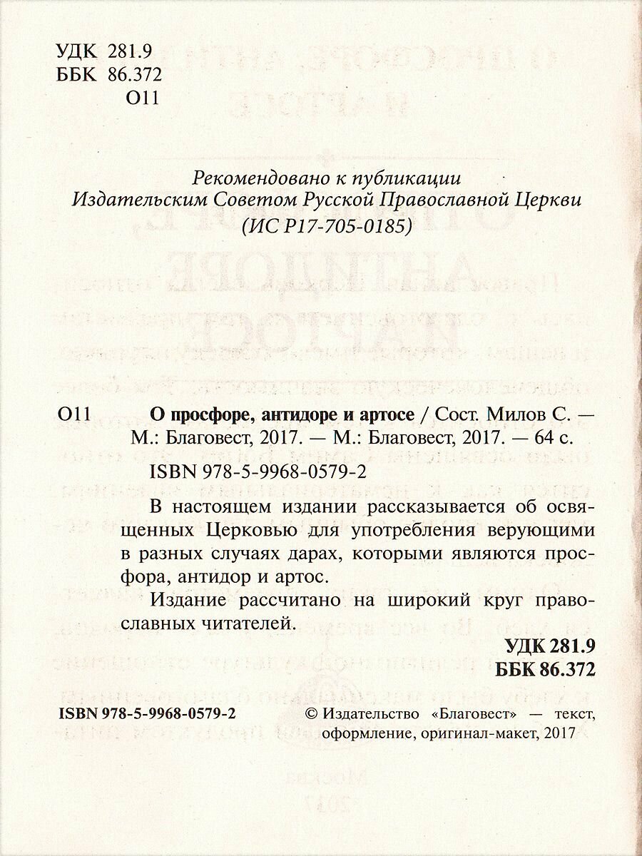 О просфоре антидоре и артосе (Группа авторов); Благовест, 2017