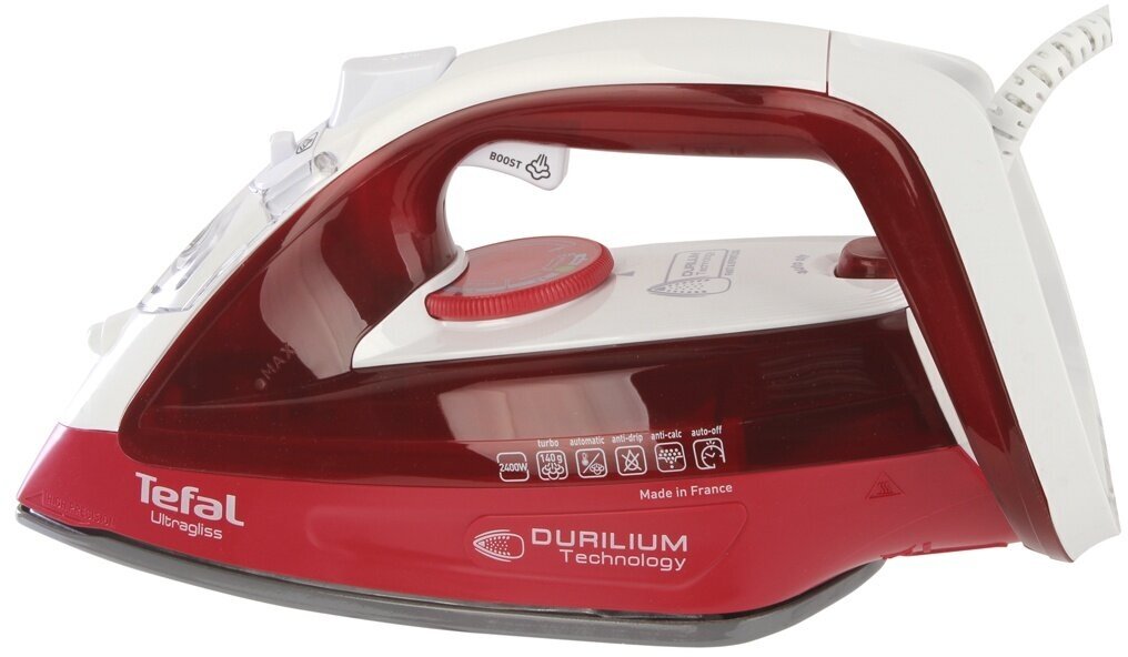 Tefal Ultragliss имеет функцию вертикального отпаривания и регулируемую подачу пара (40 г/мин.), а также функцию автонастройки количества пара в зависимости от выбранного температурного режима. Глубоко проникающий в ткань пар помогает быстро разгладить складки и заломы. Если для идеального разглаживания недостаточно обычного парового режима, Вы можете применить мощный паровой удар — 140 г/мин.