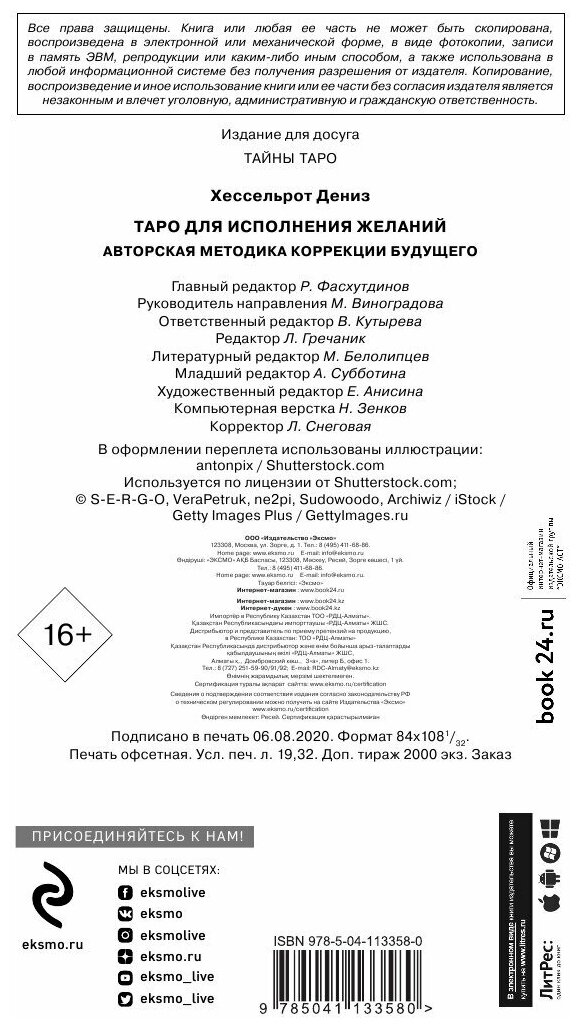На сегодняшний день товар «Книга: Таро для исполнения желаний. Авторская методика коррекции будущего (Хессельрот Дениз); ООО "Издательство "Эксмо", 2020» можно купить с кешбеком в 5 магазинах: Читай-город, book24, Яндекс.Маркет, Onliner BY, Буквоед
