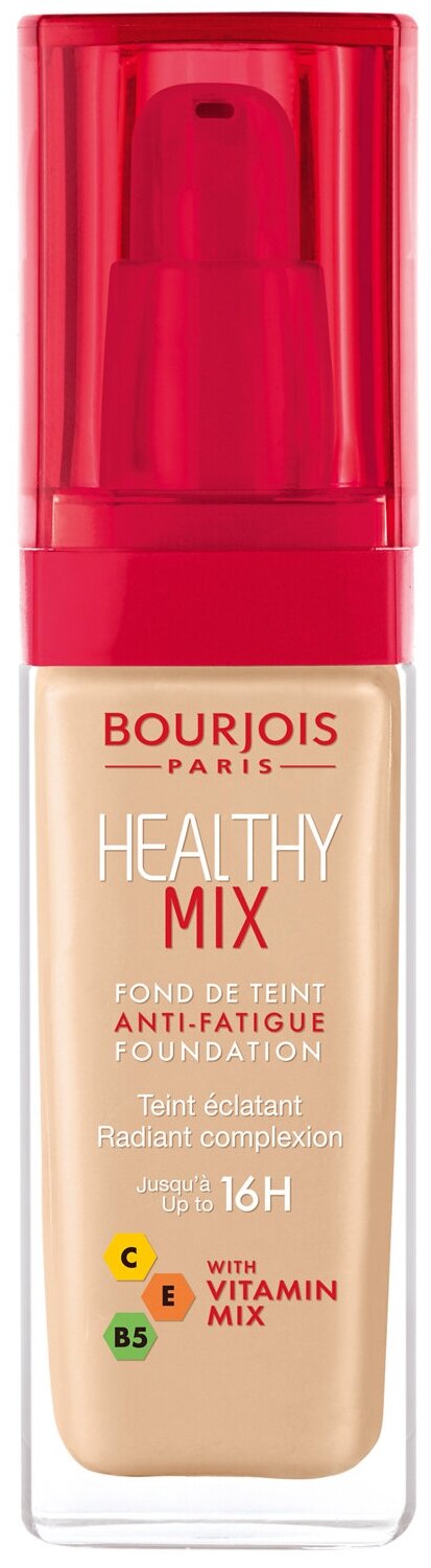 Мягкая и легкая текстура витаминно-фруктовой тональной основы Bourjois Healthy Mix Relaunch скрывает недостатки, помогая достичь сияющего, безупречного цвета лица благодаря формуле, обогащенной витаминами. Усиливает естественное сияние, улучшает эластичность кожи, визуально сокращает глубину морщинок. Эффект сияния и увлажнения продлится в течение 8 часов.