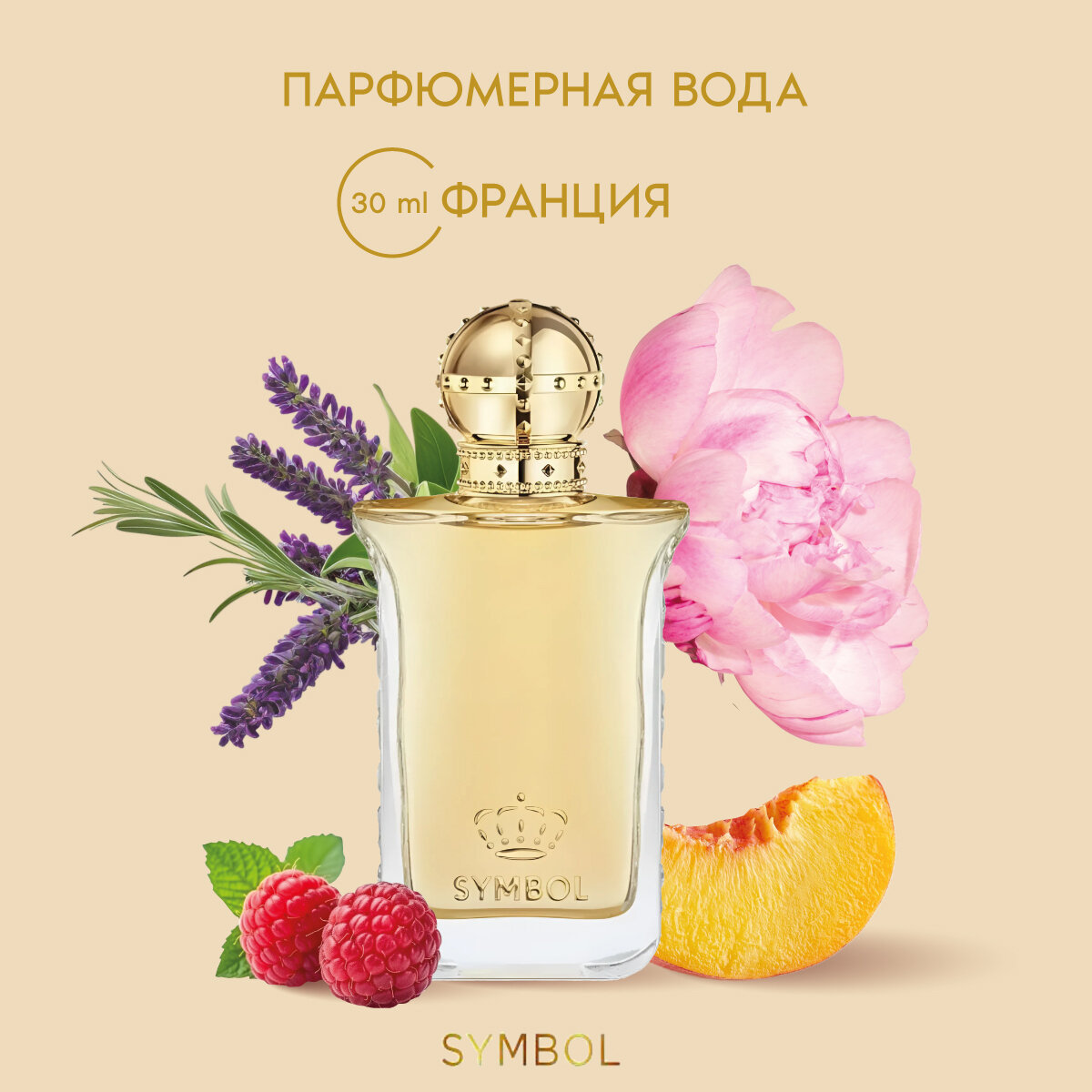 Мягкость, чувственность и символическая нежность. С созданием аромата Symbol, принцесса Марина переносит вас в свою романтическую вселенную, где стиль модерн смешивается с цветением белого цветочного букета. Его шлейф кружится и ведет вас глубоко в сердце романтической, мечтательной и спонтанной женщины. Фирменный флакон, отражающий 3 символа. Элегантный дизайн флакона был вдохновлен отделкой Версальского Замка и украшениями XVIII века. Прозрачность. Движения света проникают в кристальный и фигурный флакон, который придает возвышенный характер янтарному экстракту аромата. Натуральность. С помощью лаврового листа «Laurus Nobilis», вырезанного вручную на боковых стенках флакона, Принцесса Марина выражает натуральные свойства популярных ароматов бренда. Королевская корона. Золотой колпачок совершенствует детали королевской короны, что указывает на статус аромата. SYMBOL: удивительно свежий и цветочный аромат. В самом начале цветочный букет предлагает свежий и весенний аромат. Искра цветочного букета переходит в пленительные срединные ноты туберозы и арабского жасмина. Чувственные и притягивающие, белые цветки смешиваются с утонченными светлыми древесными аккордами.