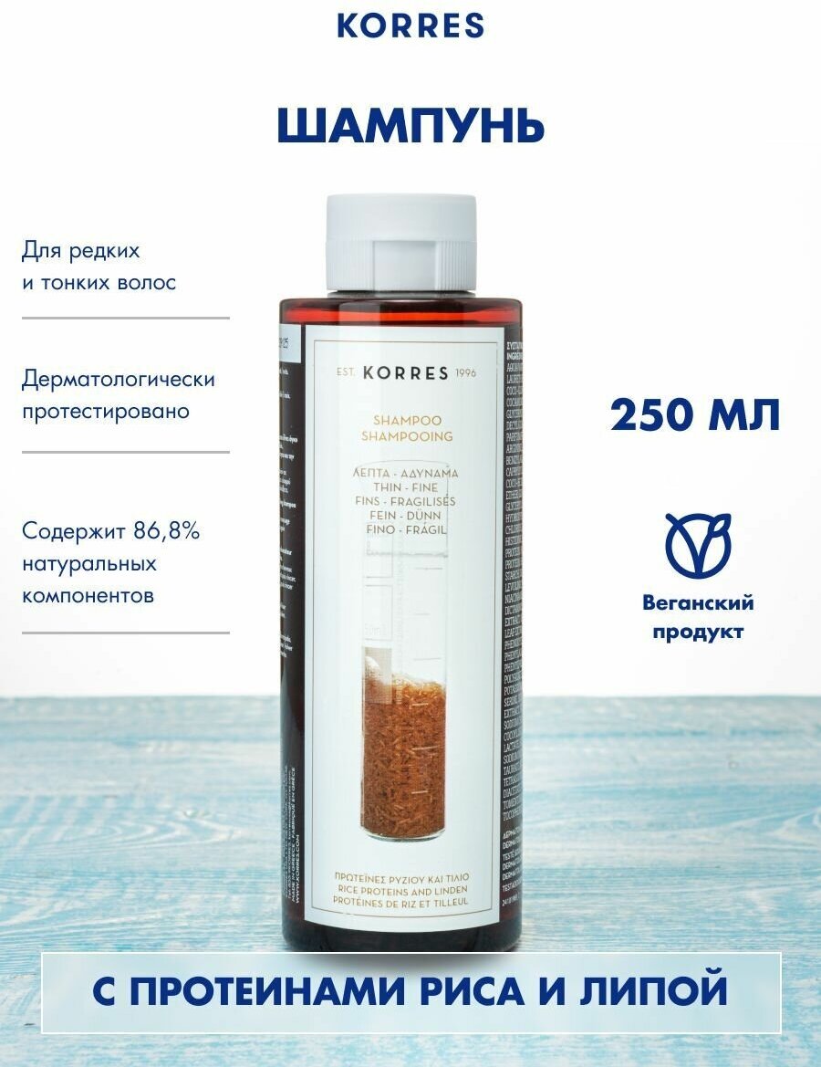 Korres Средства Для Волос Товар Шампунь для тонких ломких волос протеины риса и липа 250 мл KORRES S.A. - NATURAL PRODUCTS (1173323)