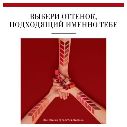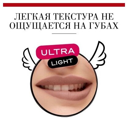 Продукт обладает питательными свойствами благодаря наличию витамина Е в составе. Помада имеет легкую текстуру, равномерно распределяется по поверхности губ, обеспечивая стойкий матовый эффект.