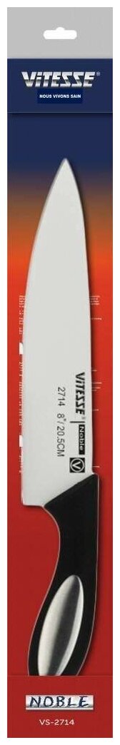 Нож Vitesse "Noble" изготовлен из высококачественной нержавеющей стали с покрытием non-stick, не допускающим прилипания. Покрытие обладает антибактериальными свойствами, легко моется, не впитывает запахи и не окрашивается соками различных продуктов.