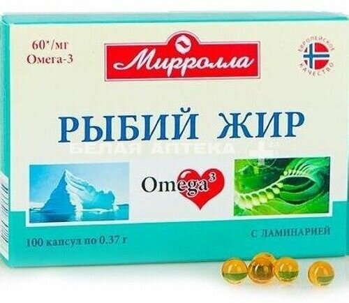 Сервис сравнения цен СкидкаГИД предлагает сравнить цены на товар «Рыбий жир Мирролла с ламинарией 100 капсул»