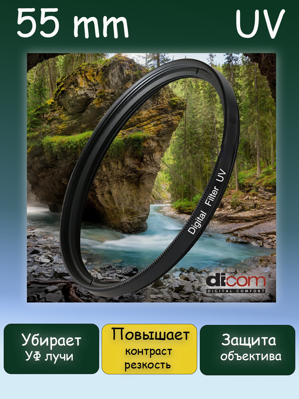 DF-U55 - ультрафиолетовый фильтр Dicom, предназначенный для предохранения оптики от пыли и загрязнения, а также от вредных воздействий окружающей среды. Помимо этого изделие призвано задерживать ультрафиолетовое излучение и “дымку” при съемке отдаленных объектов.