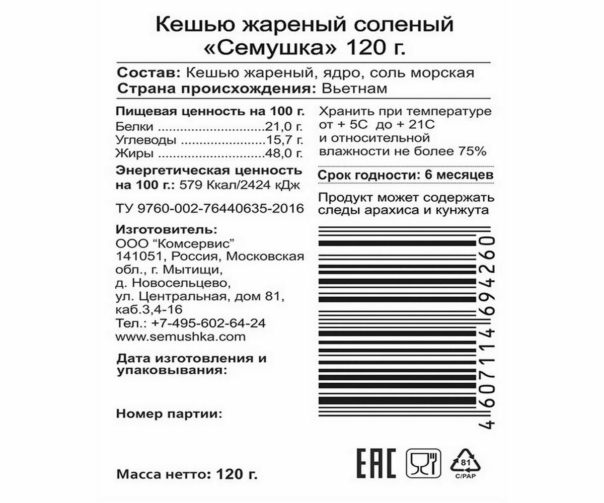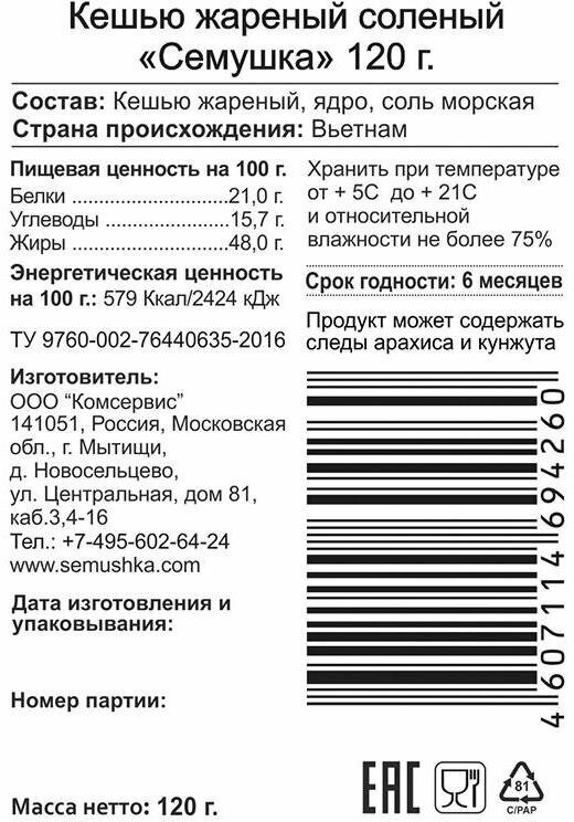 Сервис сравнения цен СкидкаГИД предлагает сравнить цены на товар «Кешью Семушка жареный соленый 120г Комсервис»