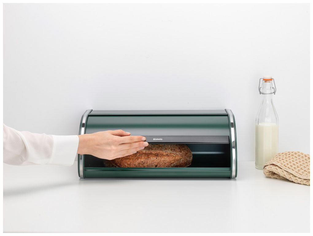 Эта хлебница компактна в использовании благодаря сдвигающейся крышке, которой не требуется дополнительное пространство при открывании