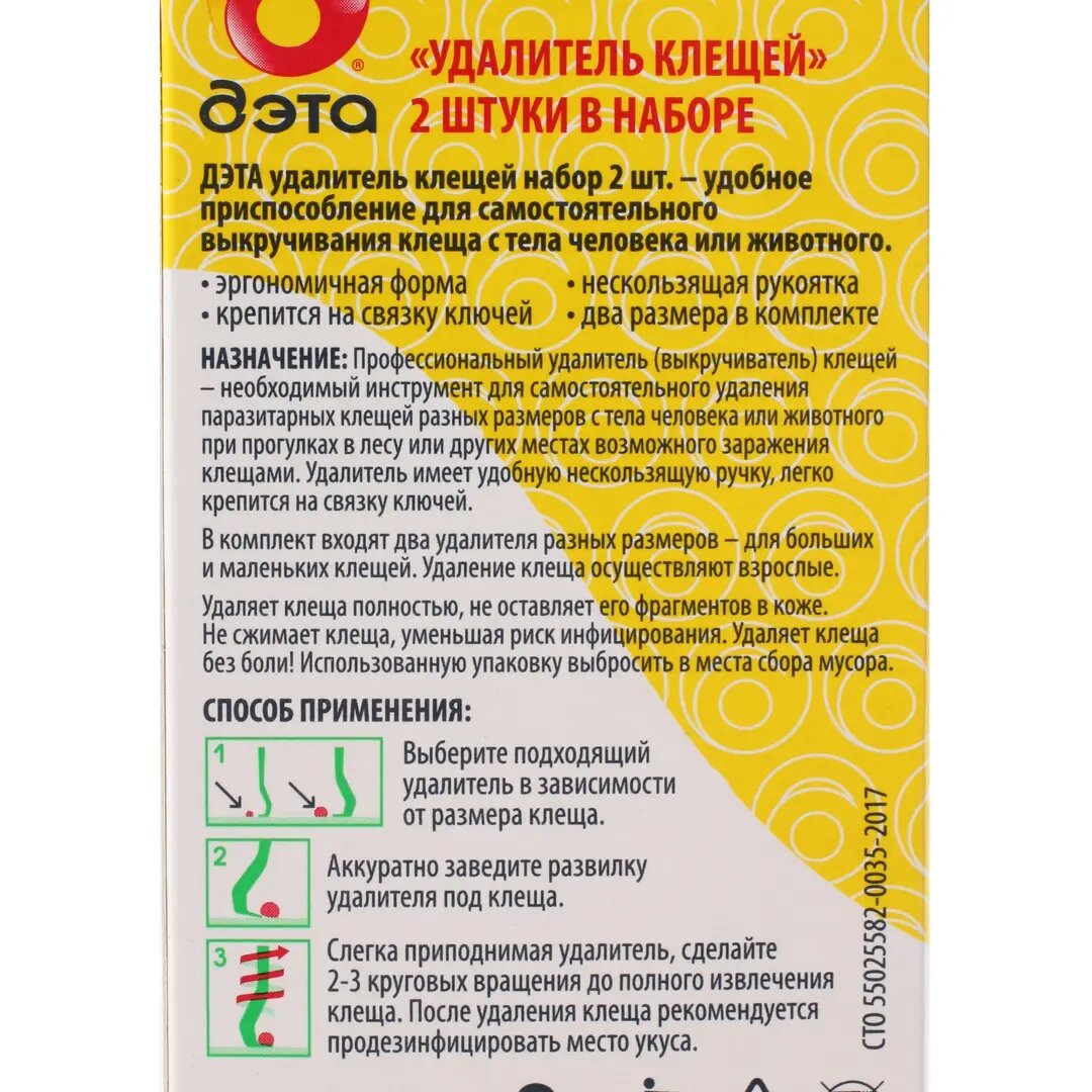 Удалитель клещей для людей и животных ДЭТА 2 шт