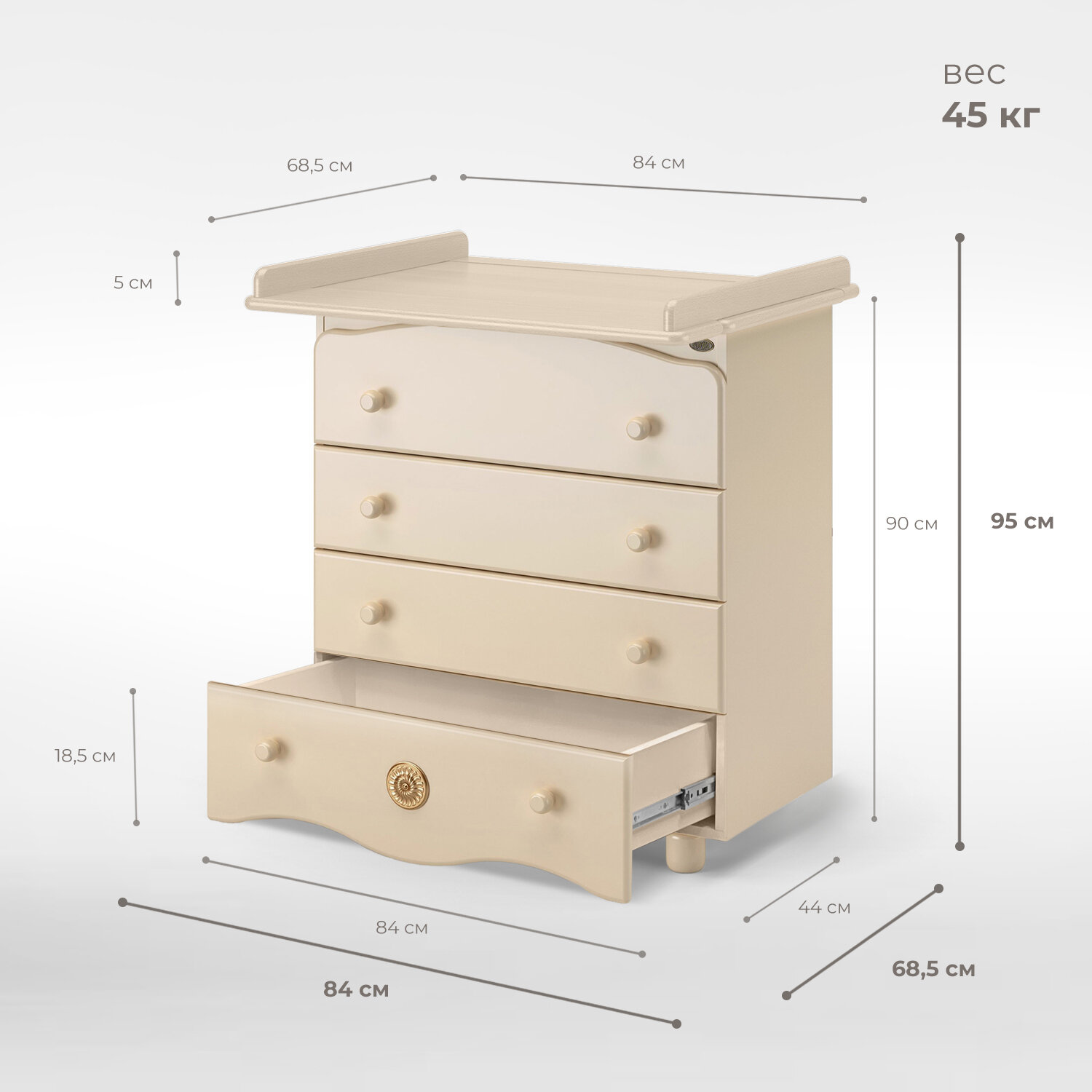 - Габариты изделия (ВхШхГ): 900х840х440 мм без пеленального столика
