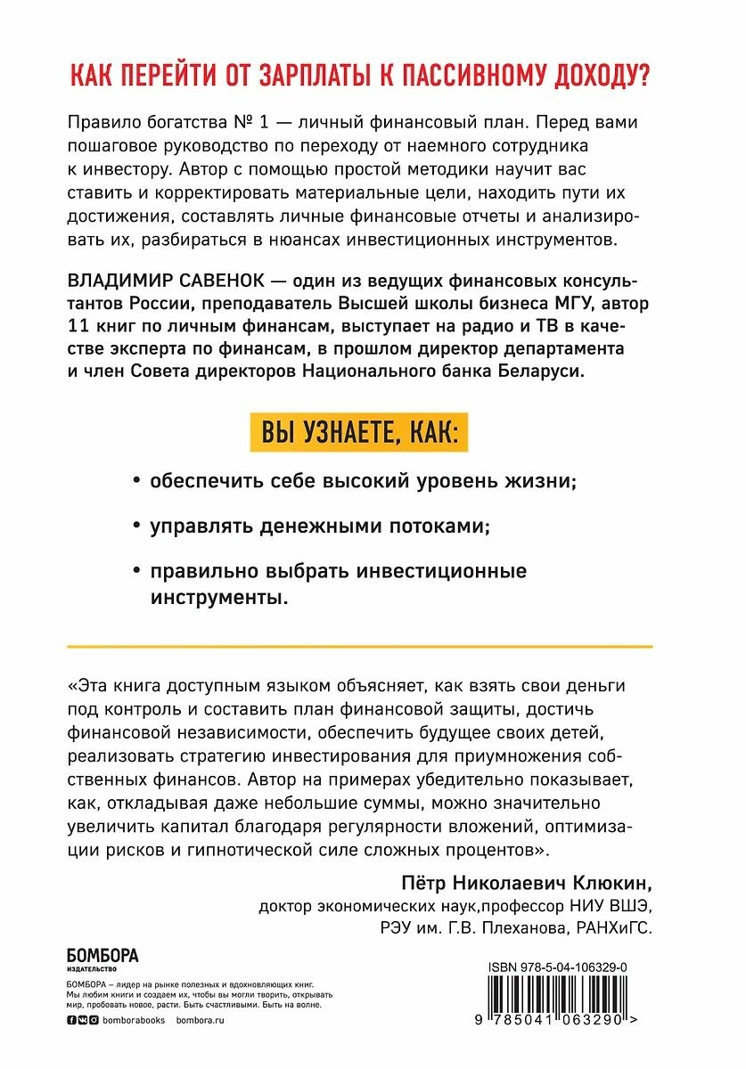 Правило богатства № 1 – личный финансовый план (Владимир Степанович Савенок); Эксмо, 2021