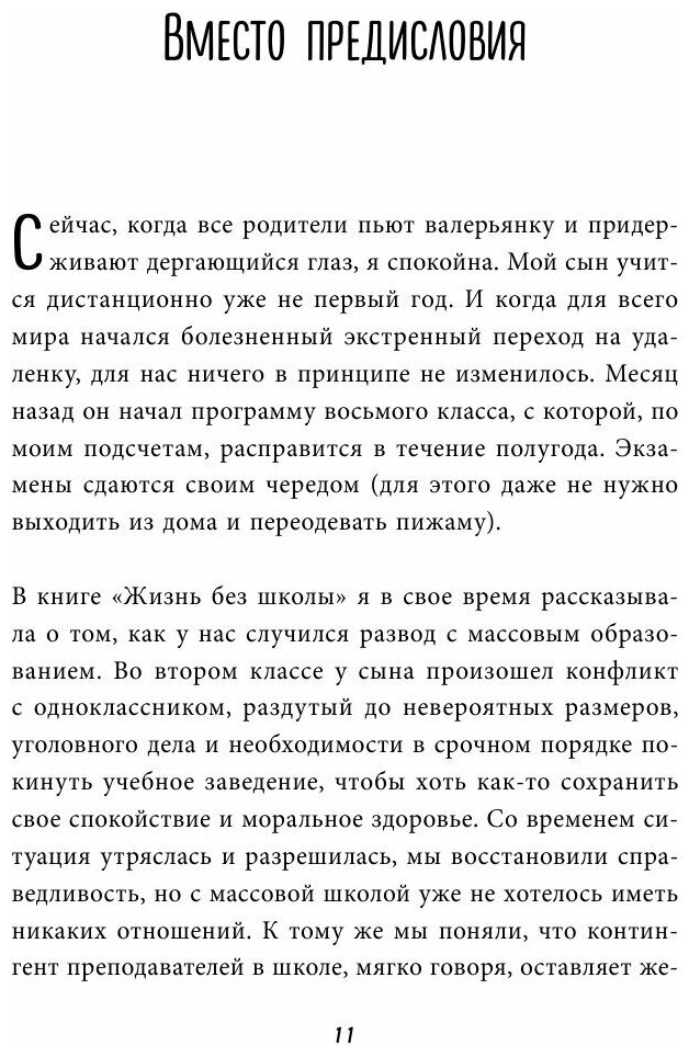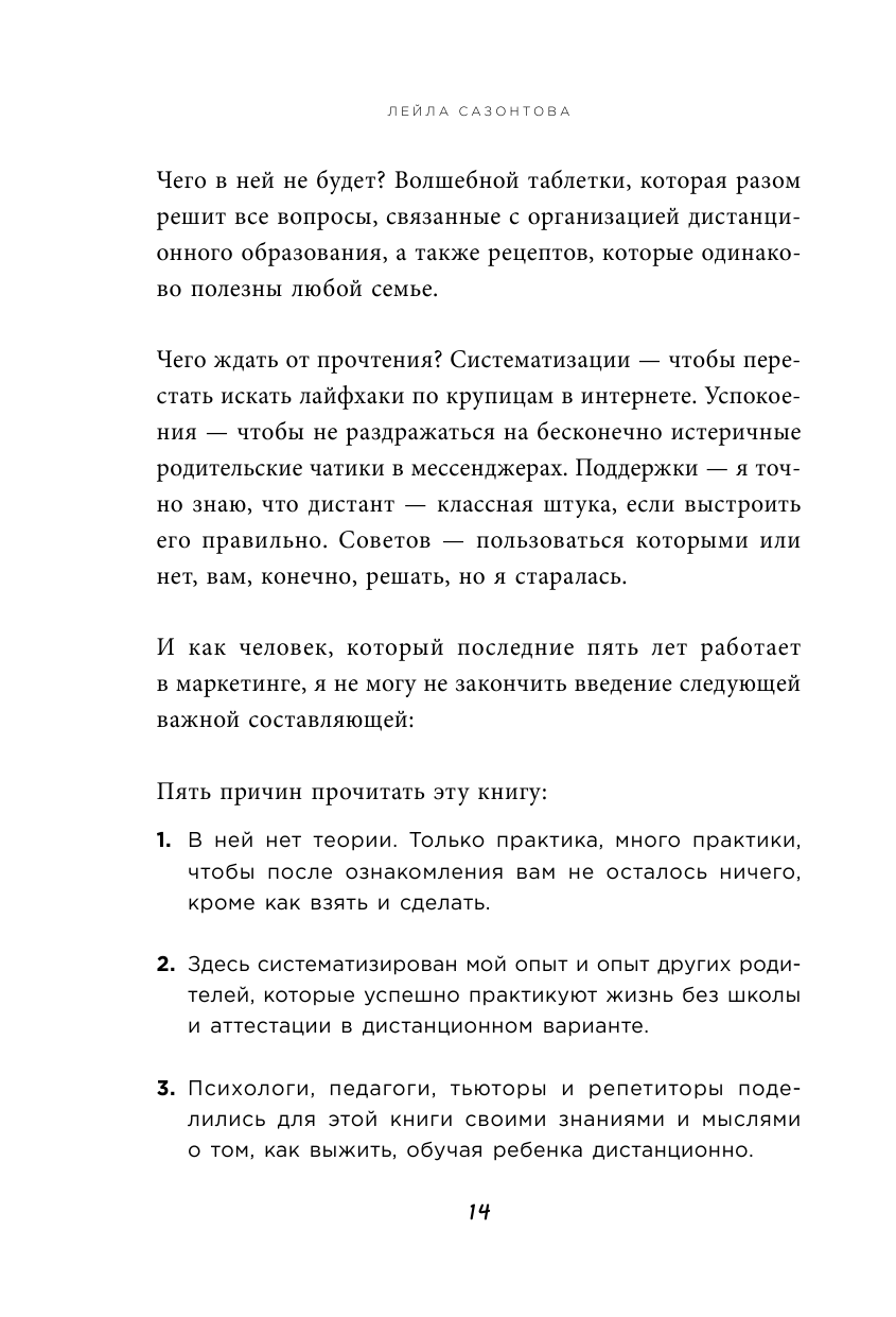 Лейла могла бы быть если не автором, то главным консультантом по разработке программ по удаленному обучению, а ее сын – рецензентом. Вот таким людям, испытавшим на себе вообще-то нелегкое дело, я бы посоветовала родителям довериться и держать этого автора за своего главного советчика в вопросе удаленного обучения.