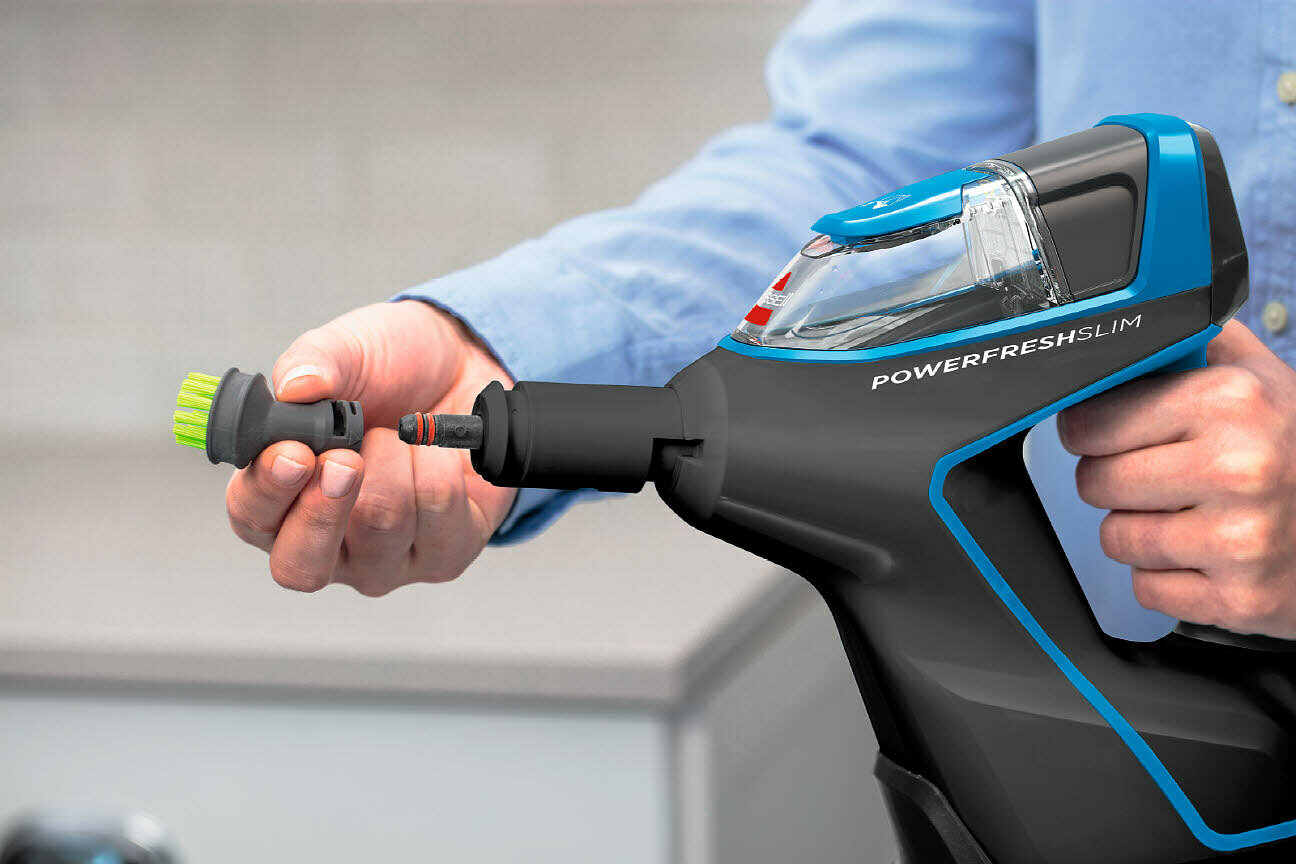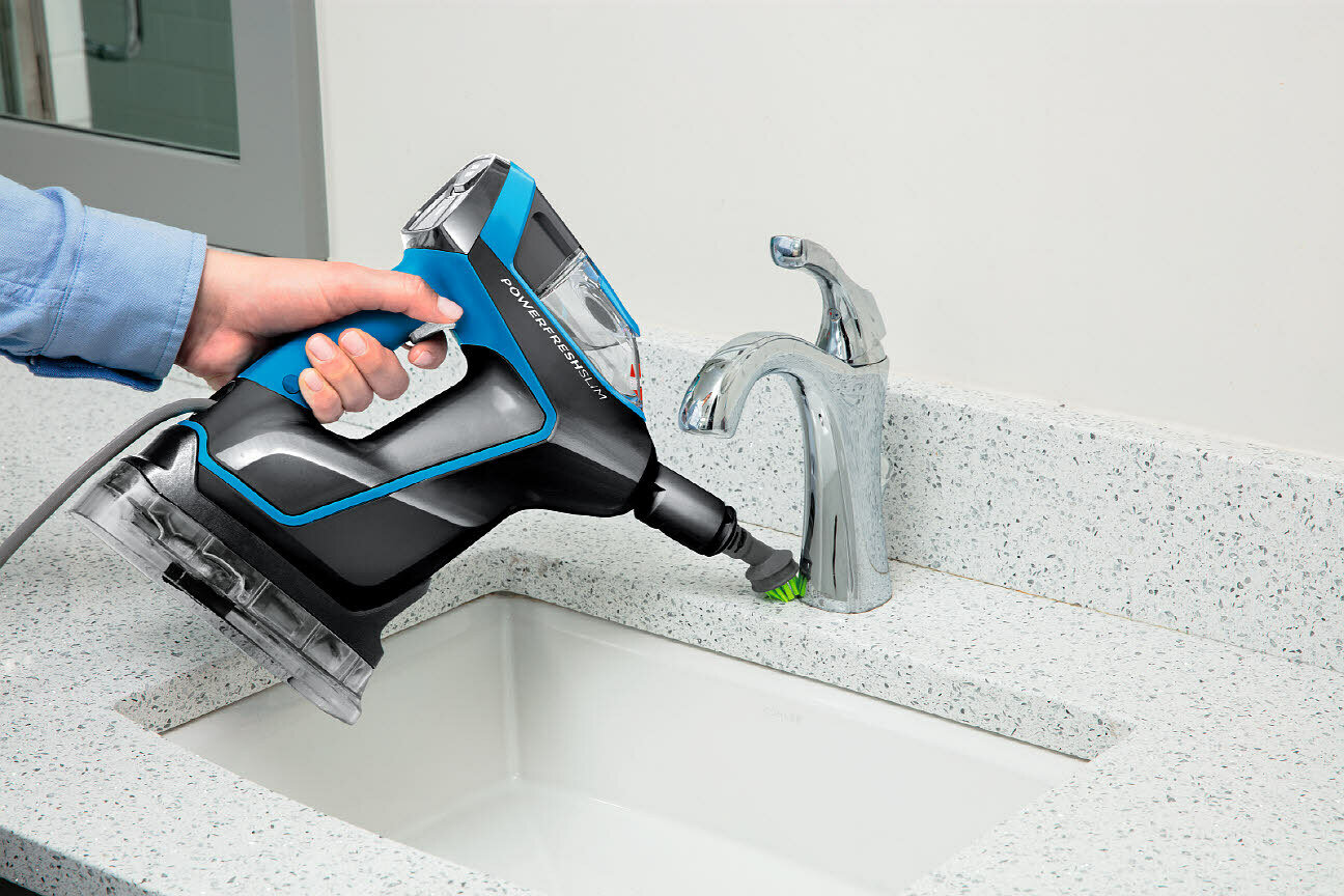 Bissell представляет собой удобный и функциональный пароочиститель 2-в-1, который может использоваться как мощная паровая швабра для твердых поверхностей, или как портативный ручной аппарат, идеально подходящий для кухонь, ванных комнат, садовой мебели, барбекю и др. Модель использует для очистки струю горячего пара, позволяя не только выполнить уборку, но и произвести дезинфекцию от различных бактерий.