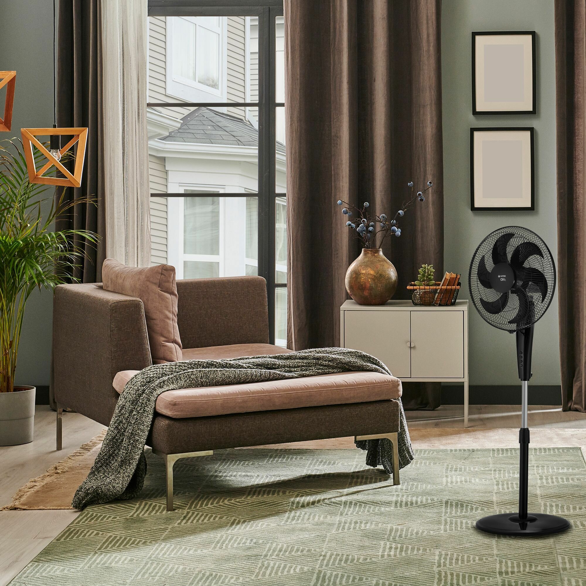 Вентилятор Vitek – шестилопастной прибор для вентиляции и охлаждения воздуха в помещении, рабочая мощность – 75 Вт. С помощью увеличенного диаметра лопасти (44,5 см) устройство обеспечивает достаточно сильный поток воздуха. Понижение температуры в помещении площадью до 25 м2 происходит в считанные минуты.