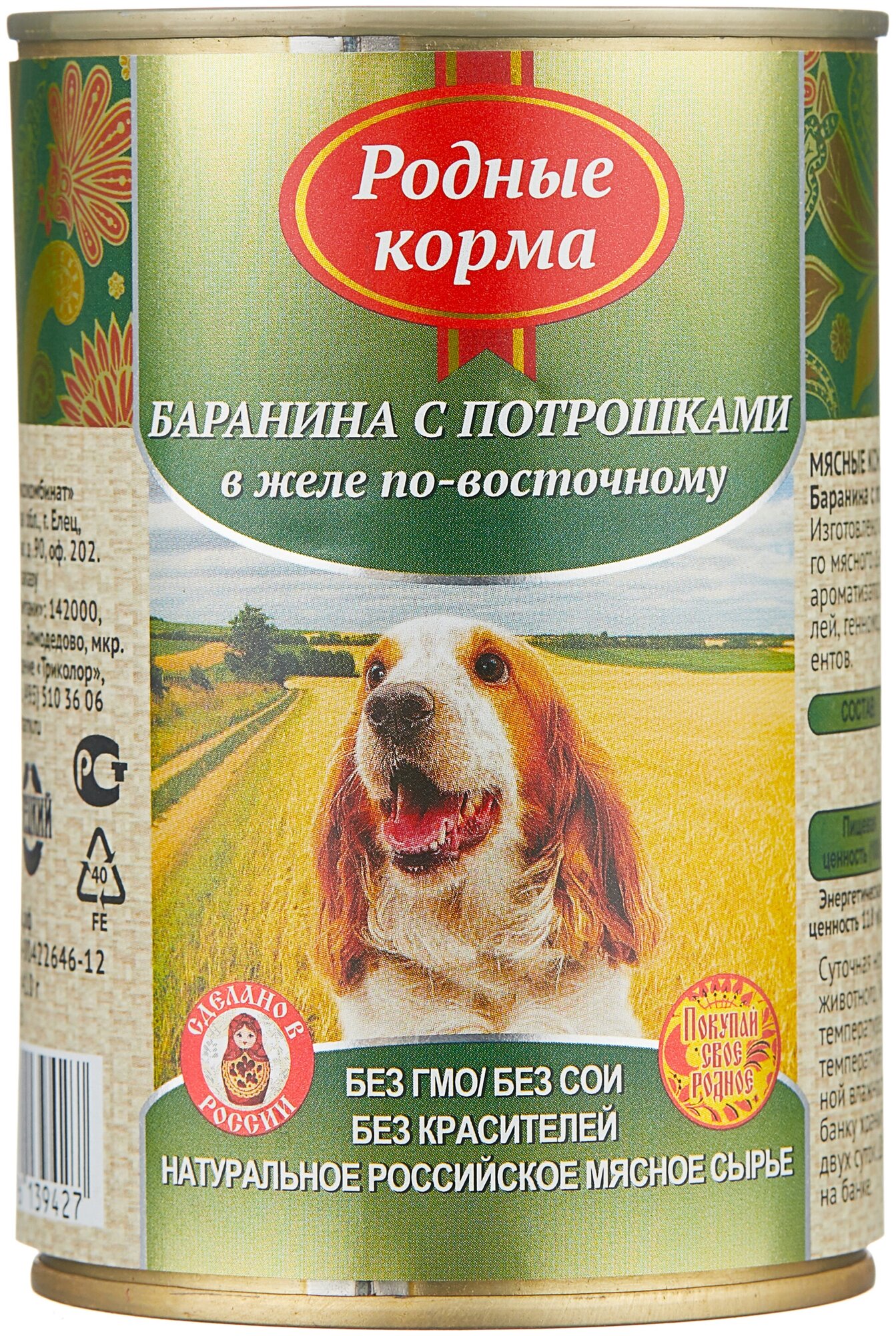 Влажный корм для собак Родные Корма Баранина с потрошками в желе по-восточному 041 кг баранина, 410 г