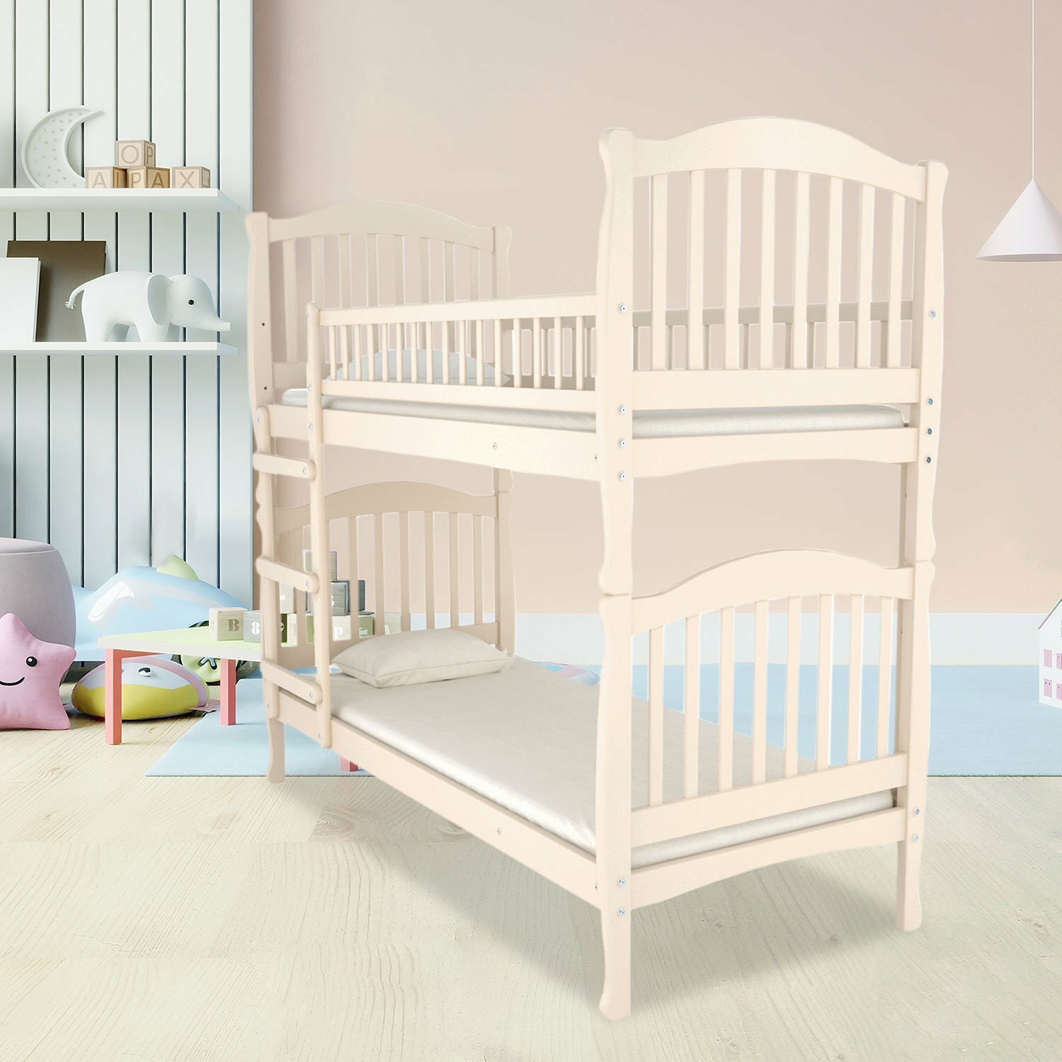 Для безопасности спящего на верхнем ярусе ребенка предусмотрены бортики высотой 33 см. Доступ наверх обеспечивает удобная лестница, первая ступенька которой защищает матрас нижней кровати от заступов. При трансформации в 2 кровати лестница демонтируется без вреда для внешнего вида изделия.