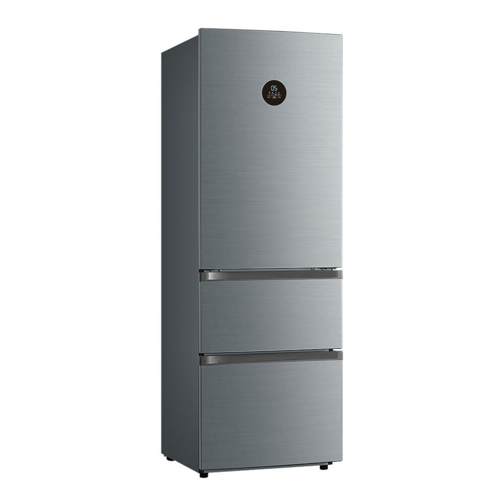 Общий объем холодильника составляет 321 литр, что позволяет удобно распределить продукты по полкам и отделениям. Внутри есть специальная зона свежести, где можно сохранять мясо или овощи при оптимальных температурных условиях.