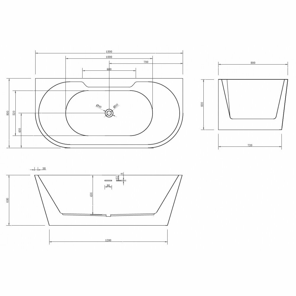 Акриловая ванна Abber AB9296-1.5 150х80 без гидромассажа