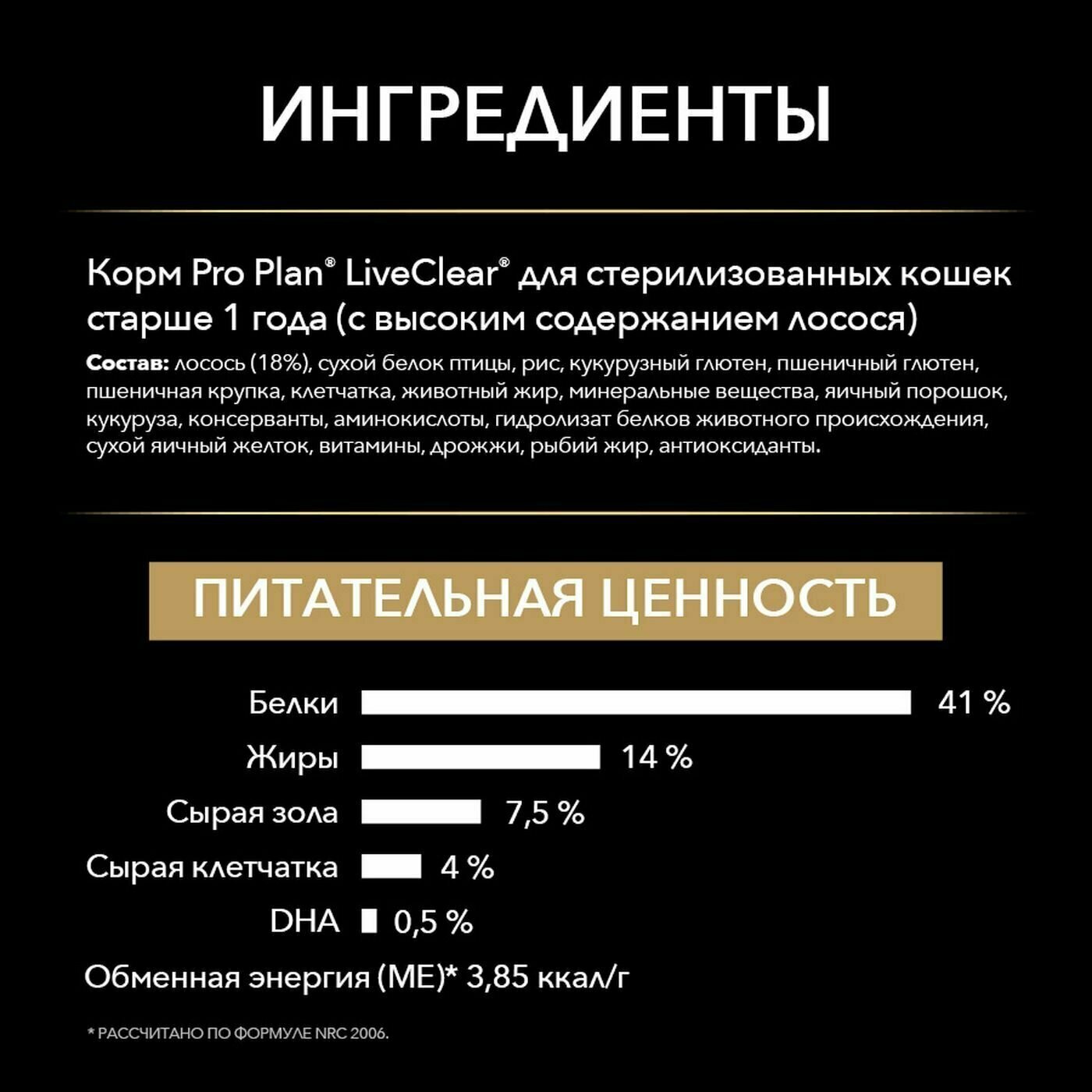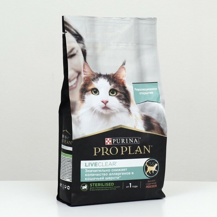 Рацион Pro Plan® LiveClear® — это превосходное питание, способное изменить вашу совместную жизнь с питомцем. Когда кошки едят корм Pro Plan® LiveClear®, особый белок куриного яйца связывается с аллергеном в их слюне и нейтрализует его. Благодаря чему уровень аллергенов в кошачьей шерсти значительно снижается уже с 3-ей недели при ежедневном кормлении* вашей кошки рационом Pro Plan® LiveClear®.