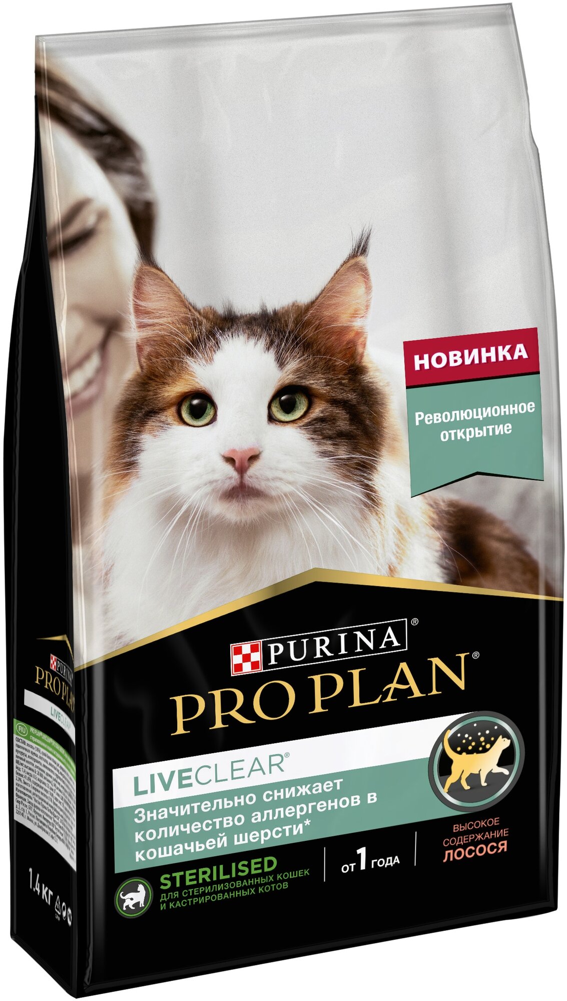 Корм для кошек Pro Plan Live Clear для стерилизованных, лосось сух. 1,4кг