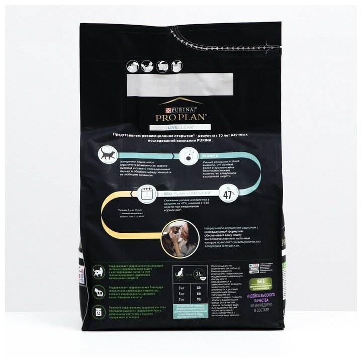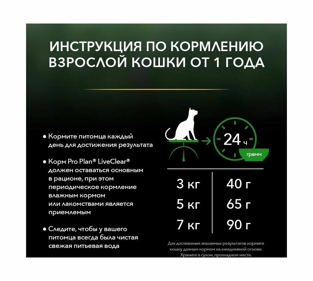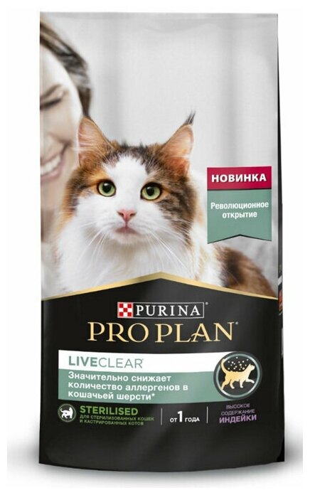 Рацион Pro Plan® LiveClear® — это превосходное питание, способное изменить вашу совместную жизнь с питомцем. Когда кошки едят корм Pro Plan® LiveClear®, особый белок куриного яйца связывается с аллергеном в их слюне и нейтрализует его. Благодаря чему уровень аллергенов в кошачьей шерсти значительно снижается уже с 3-ей недели при ежедневном кормлении* вашей кошки рационом Pro Plan® LiveClear®.