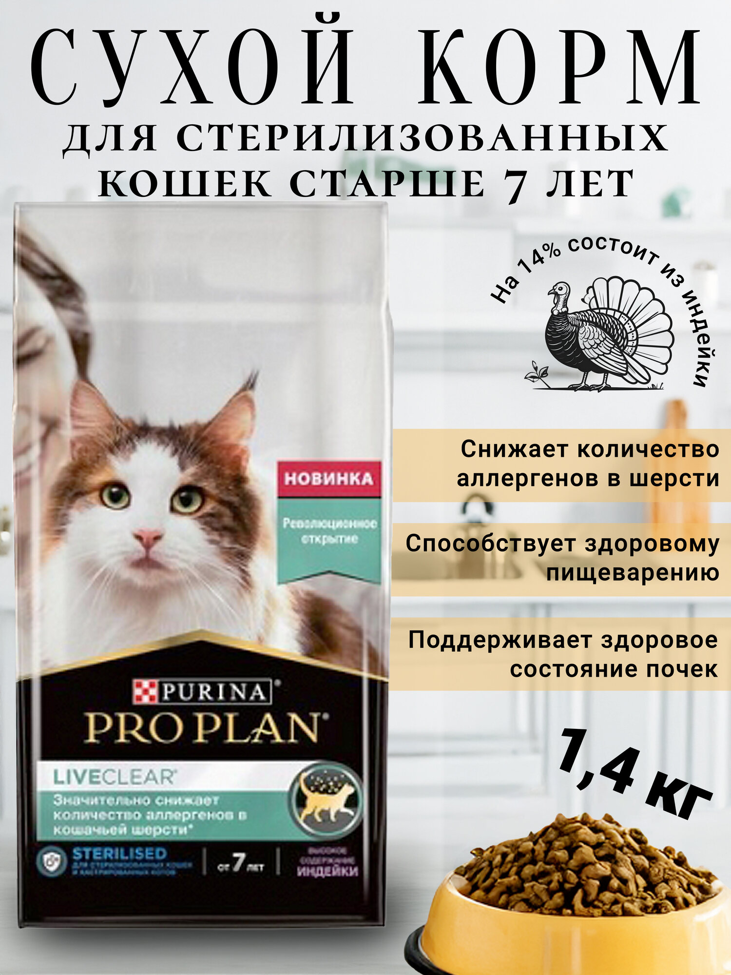 Корм для кошек Pro Plan Live Clear для стерилизованных старше 7 лет, индейка сух. 1,4кг
