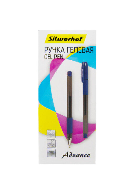Упаковка гелевых ручек SILWERHOF Advance 0.5мм цвет чернил: синий [026182-01] 12 шт./кор.