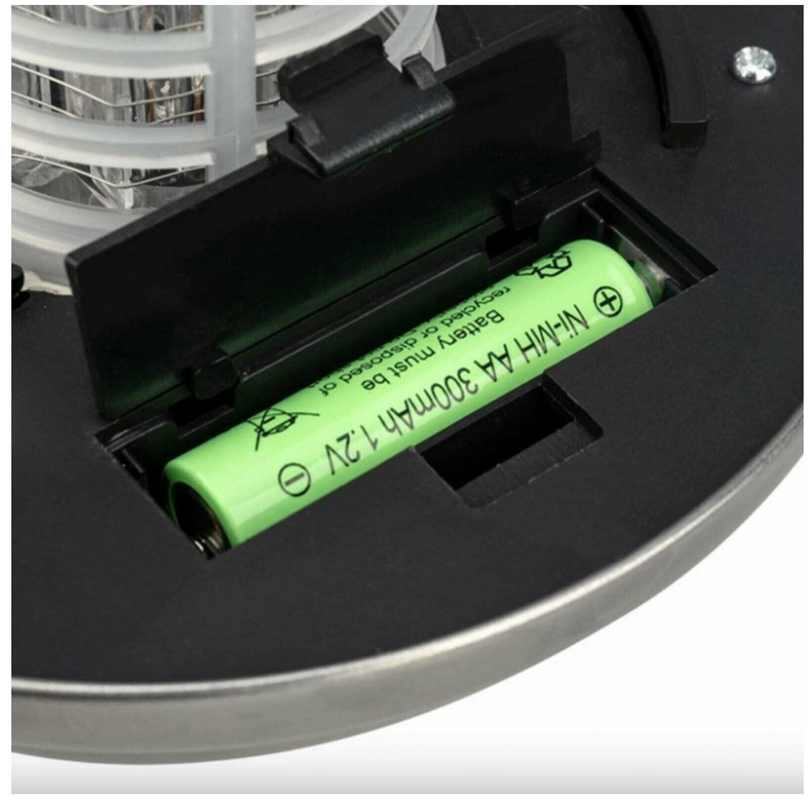 Металлический антимоскитный садовый светильник сочетает 2 прибора в 1: уничтожитель летающих насекомых и светильник для подсветки территории. Прибор днем заряжается от солнечной батареи и эффективно работает ночью. Принцип действия уничтожителя основан на использовании ультрафиолетового излучения.