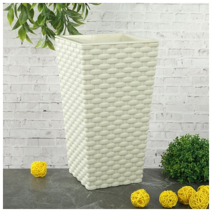 Кашпо IDEA Ротанг М3085 белое D13,8 H25