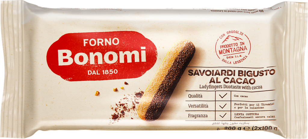 Савоярди двухцветное Bonomi - печенье Савоярди с ванилью и какао великолепно само по себе, а также для приготовления тортов измороженного и тирамиссу. Савоярди двухцветное Bonomi - двойное удовольствие и возможность для экспериментов!