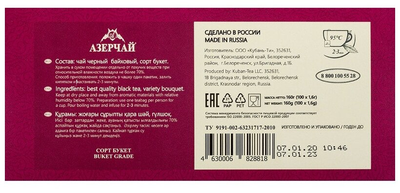 Чай черный Азерчай Букет байховый 25 пак Кубань-Ти