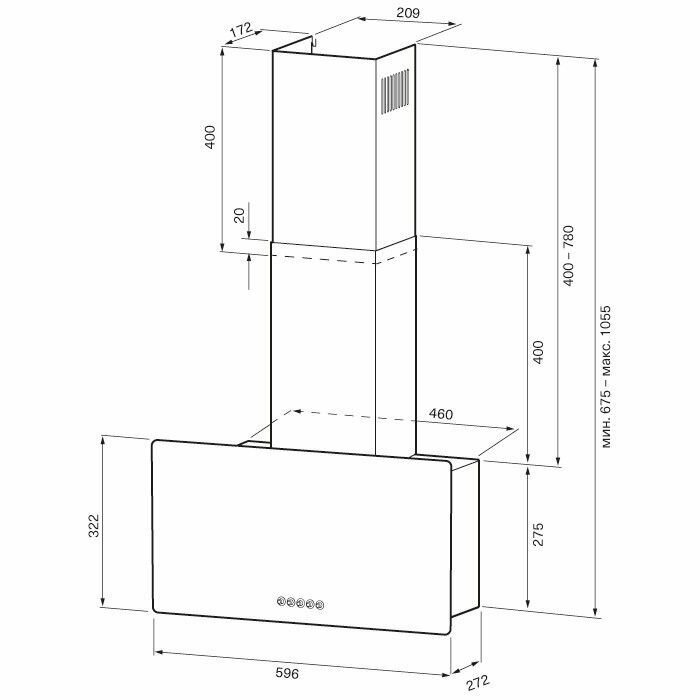 | Преимущества модели | Высокая производительность 1050 куб.м. Стильный дизайн-одно стекло. Уменьшенная высота встраивания над варочной поверхностью (55 см/65 см) |