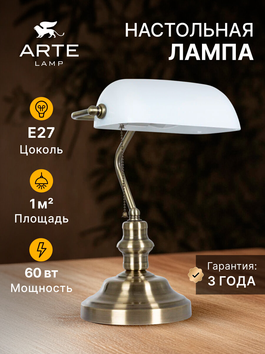 - Кабинетная настольная лампа A2492LT-1AB BANKER Arte Lamp (Италия)