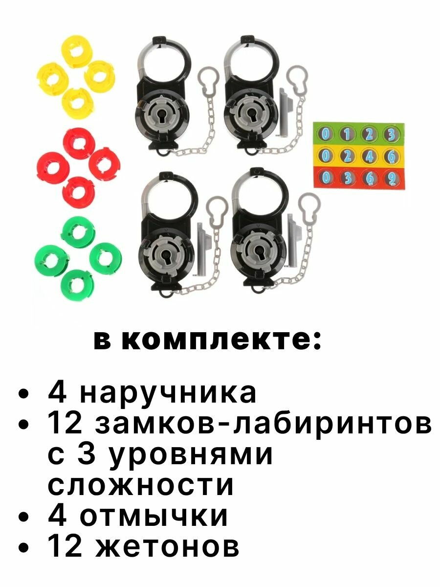 | Комплектация | наручники; замки-лабиринты; отмычки; жетоны; инструкция |