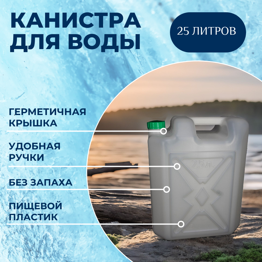Канистра изготовлена из прочного пищевого пластика и предназначена для транспортировки и хранения пищевых жидкостей.