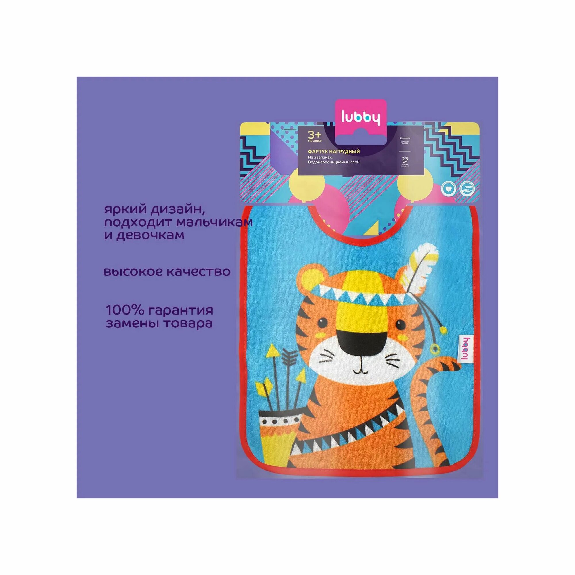 Нагрудник Lubby с завязками текстильный (20764)